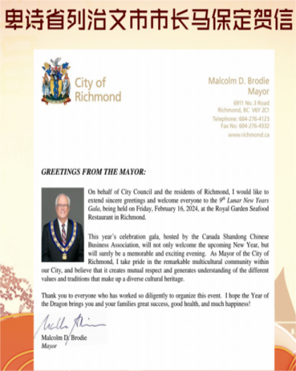 晚会收到了来自加拿大三级政要和山东省部分地市的贺函。